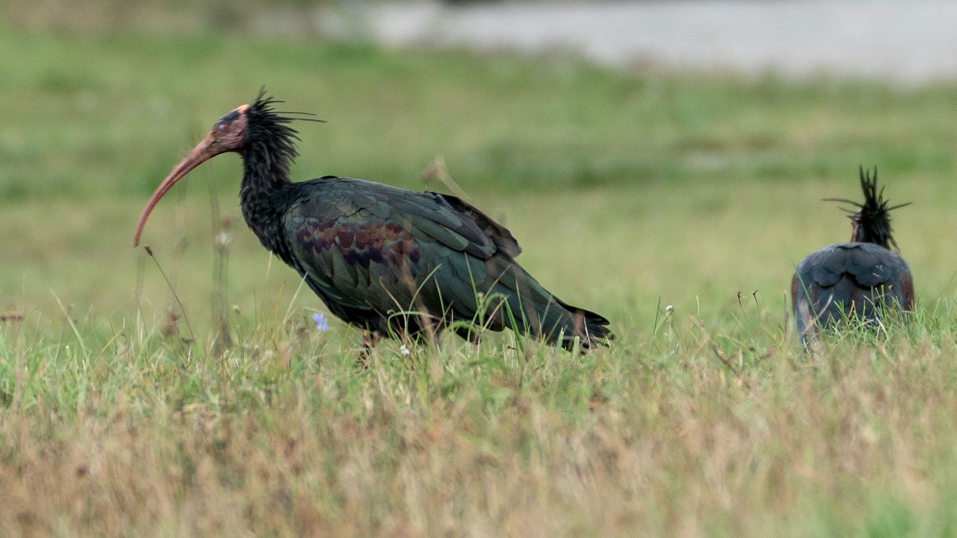 In den Auen des Waffenplatzes stärken sich häufig Durchzügler wie dieser am Bodensee wieder angesiedelte Waldrapp. — © VBS-DDPS, Matthias Niederer