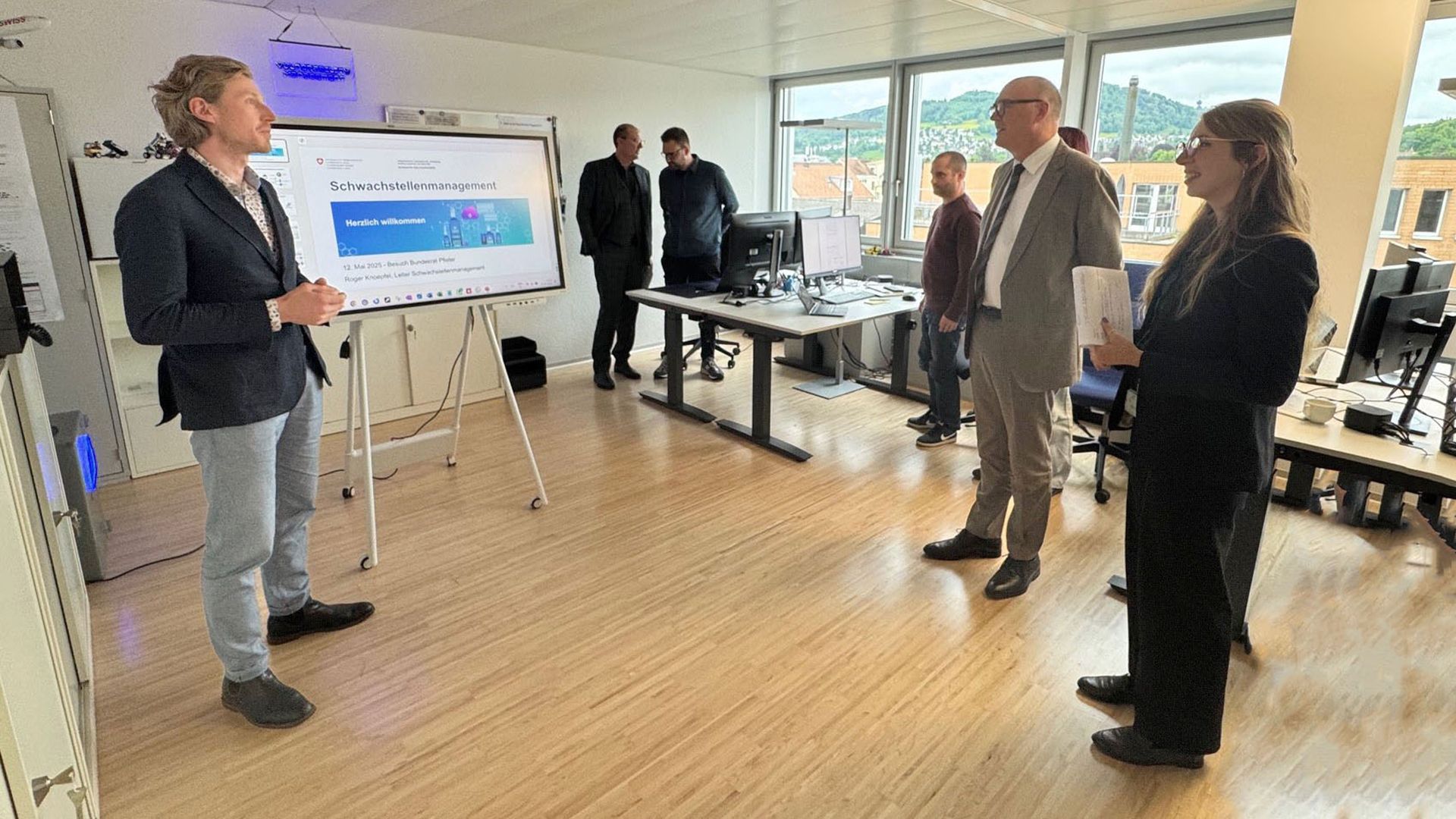 Le 12 mai 2025, le conseiller fédéral Martin Pfister a rendu visite à l'Office fédéral de la cybersécurité (OFCS). Le chef du DDPS tient à visiter les offices fédéraux relevant de son département.
