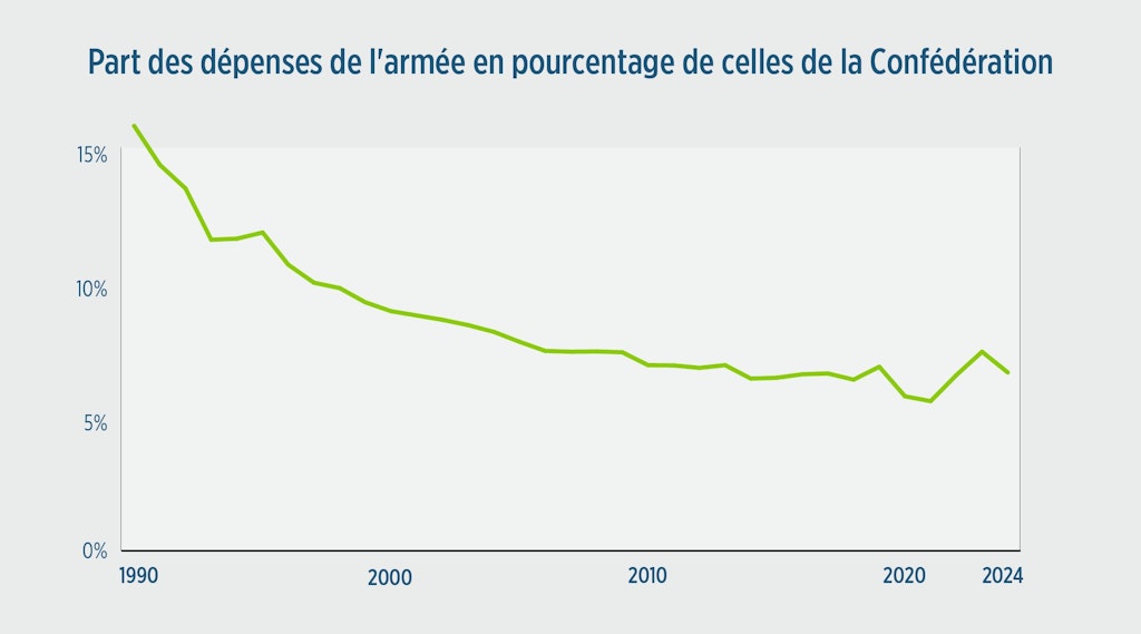 Les dépenses consacrées à l’armée correspondaient à 1,33 % du PIB en 1990 et à 0,66 % en 2024.