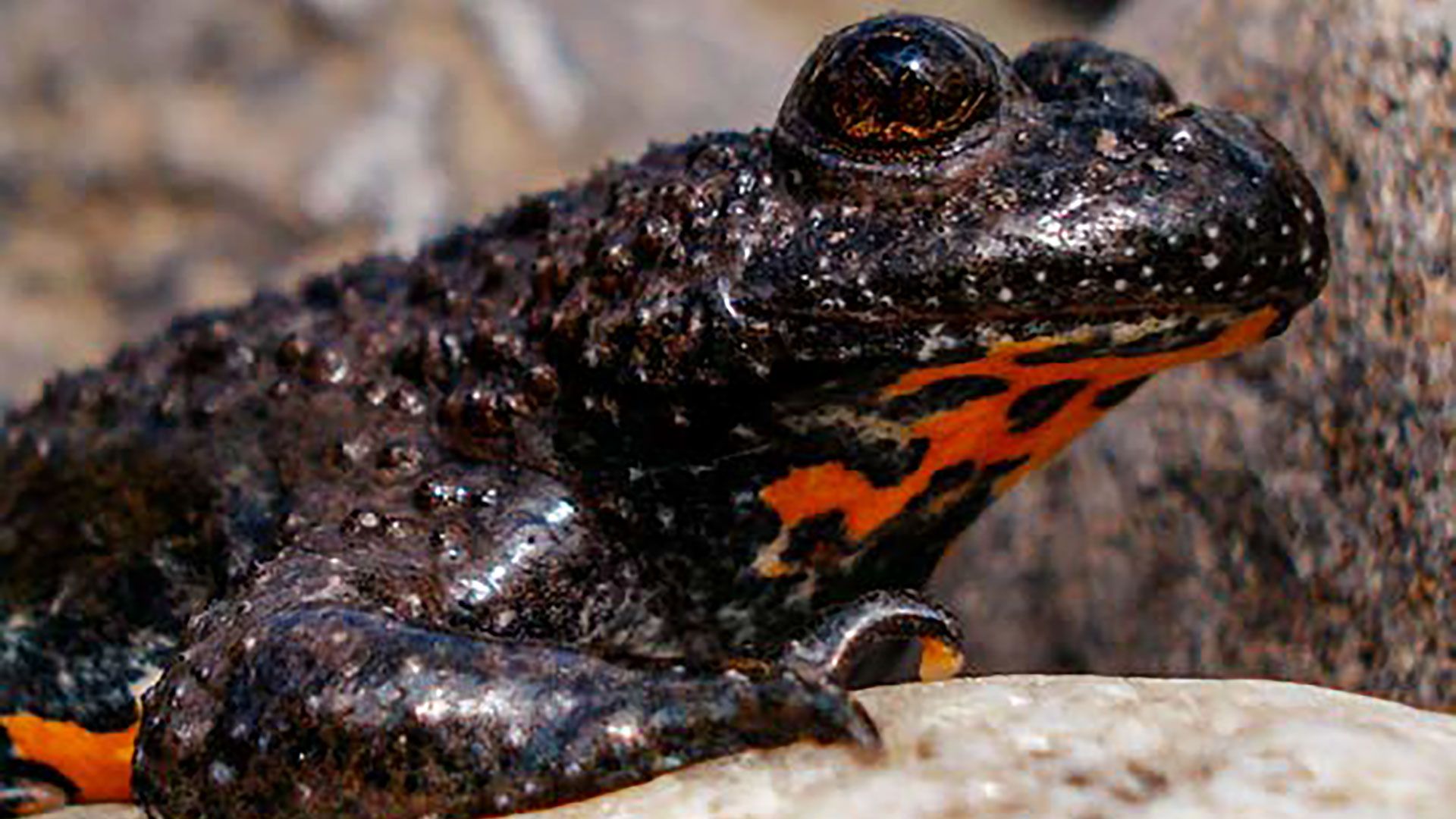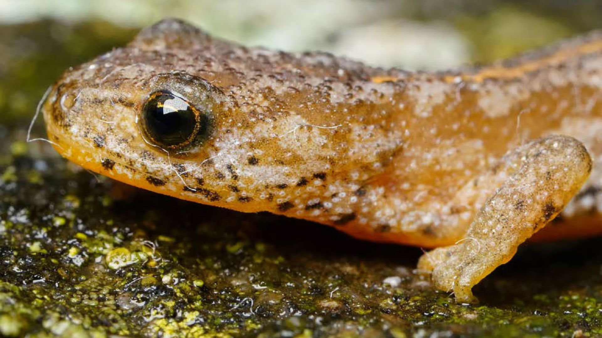 Die über den gesamten Waffenplatz verteilten Weiher, Tümpel und Wassergräben bieten Lebensraum für Amphibien wie diesen jungen Bergmolch und den plärrenden Wasserfrosch. Die Weiher wurden erweitert und mit Amphibienleitwerken vernetzt. - Pionierflächen