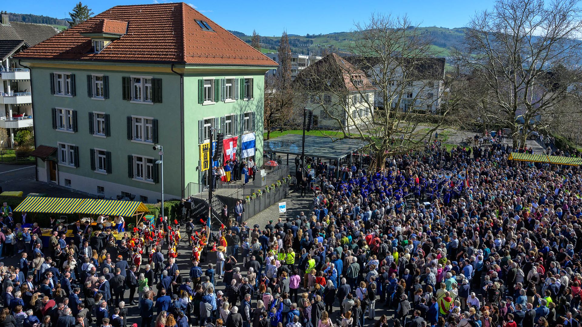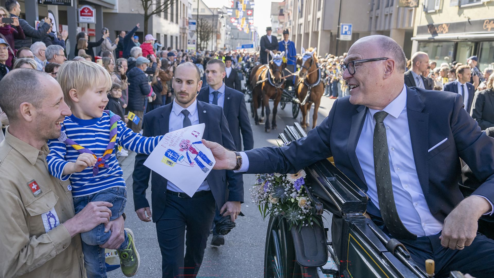Après l’arrivée du train spécial en provenance de Berne peu après midi, un cortège solennel l’a emmené de la gare de Baar à la cour d’école sur la Marktgasse, où la population zougoise a pu fêter son nouveau conseiller fédéral.