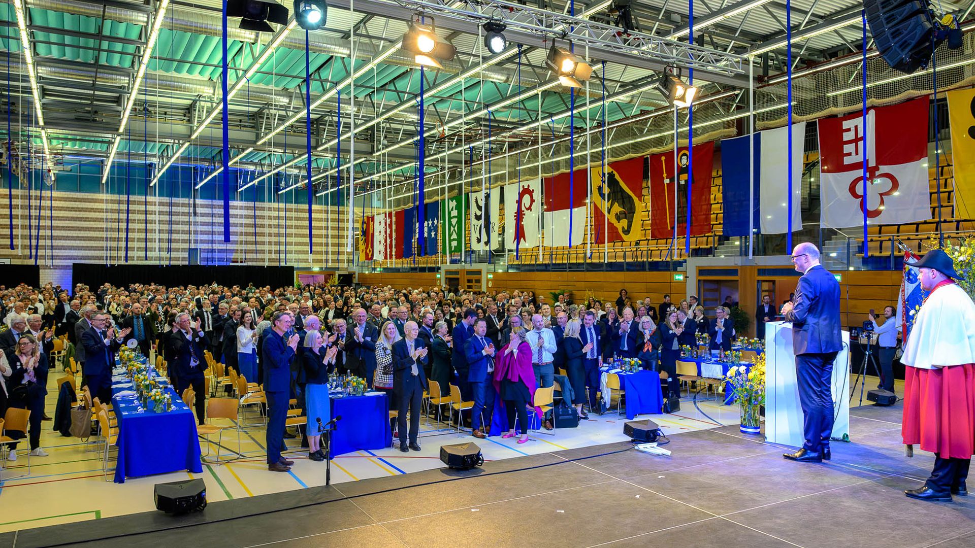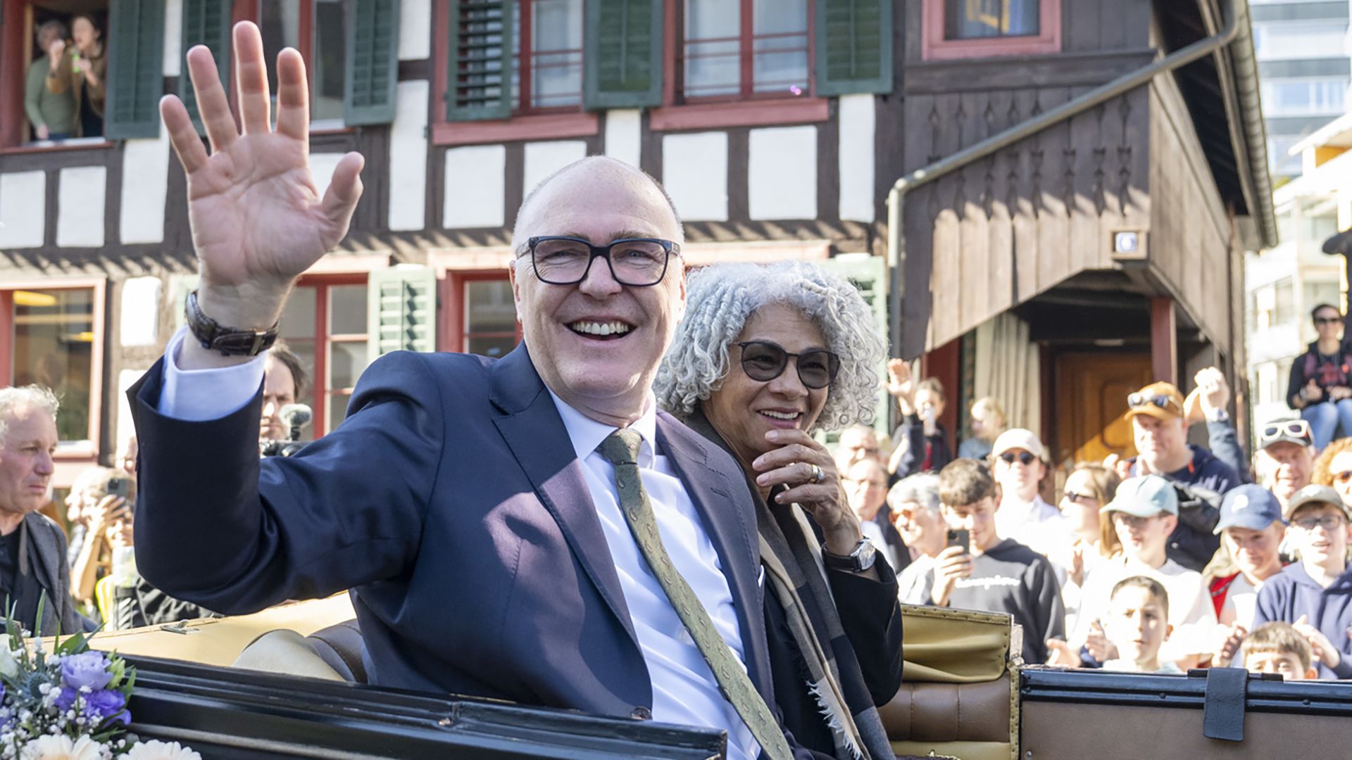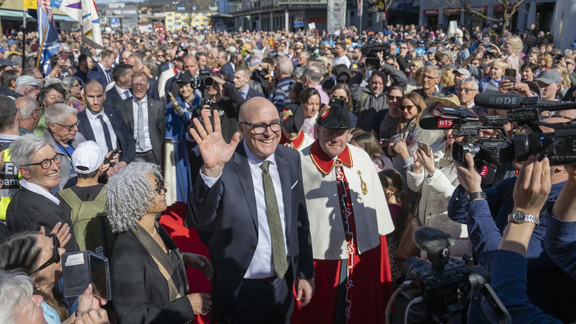 Le conseiller fédéral fraîchement élu Martin Pfister a été fêté comme il se doit dans sa commune de Baar le jeudi 20 mars 2025.