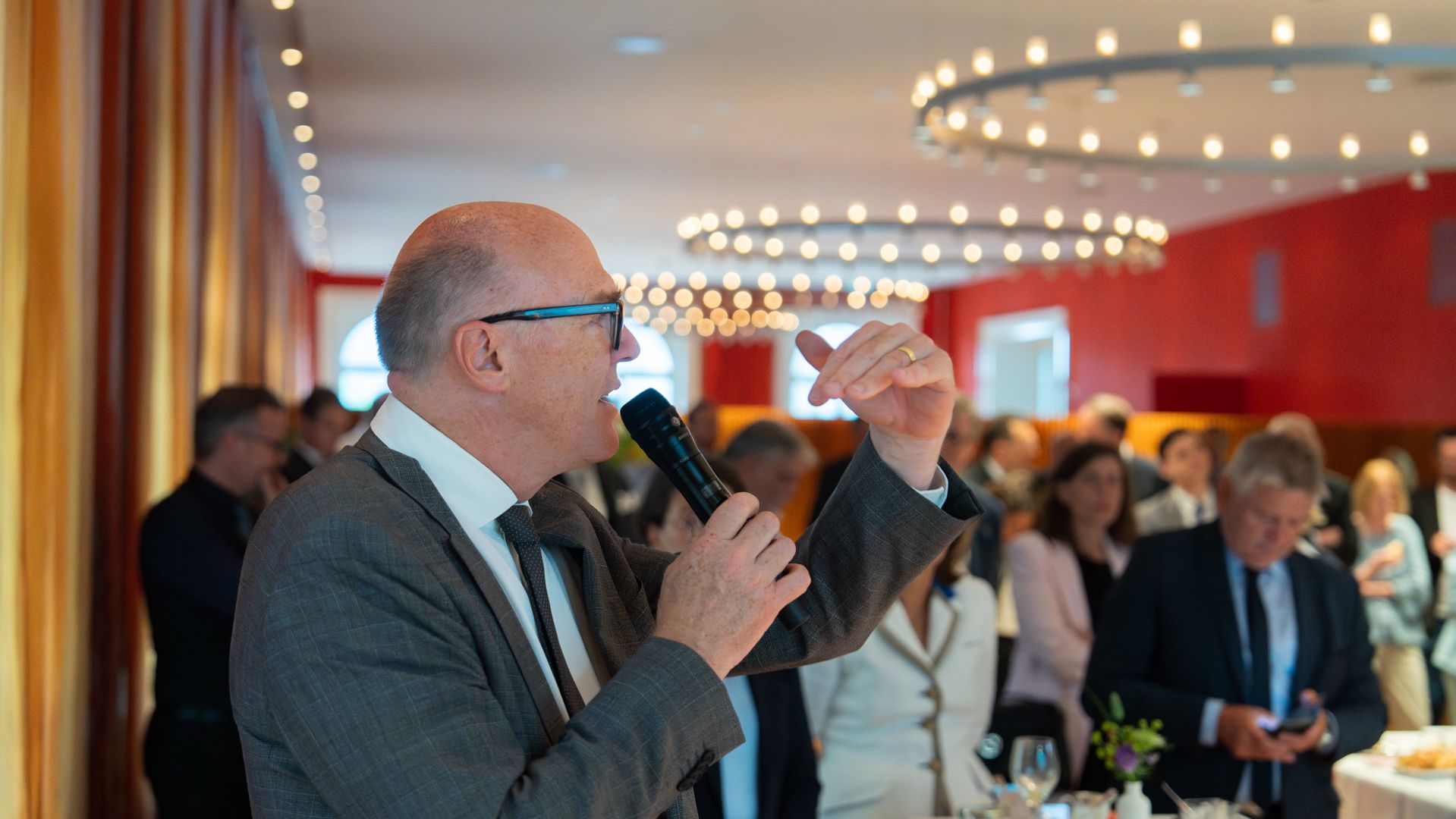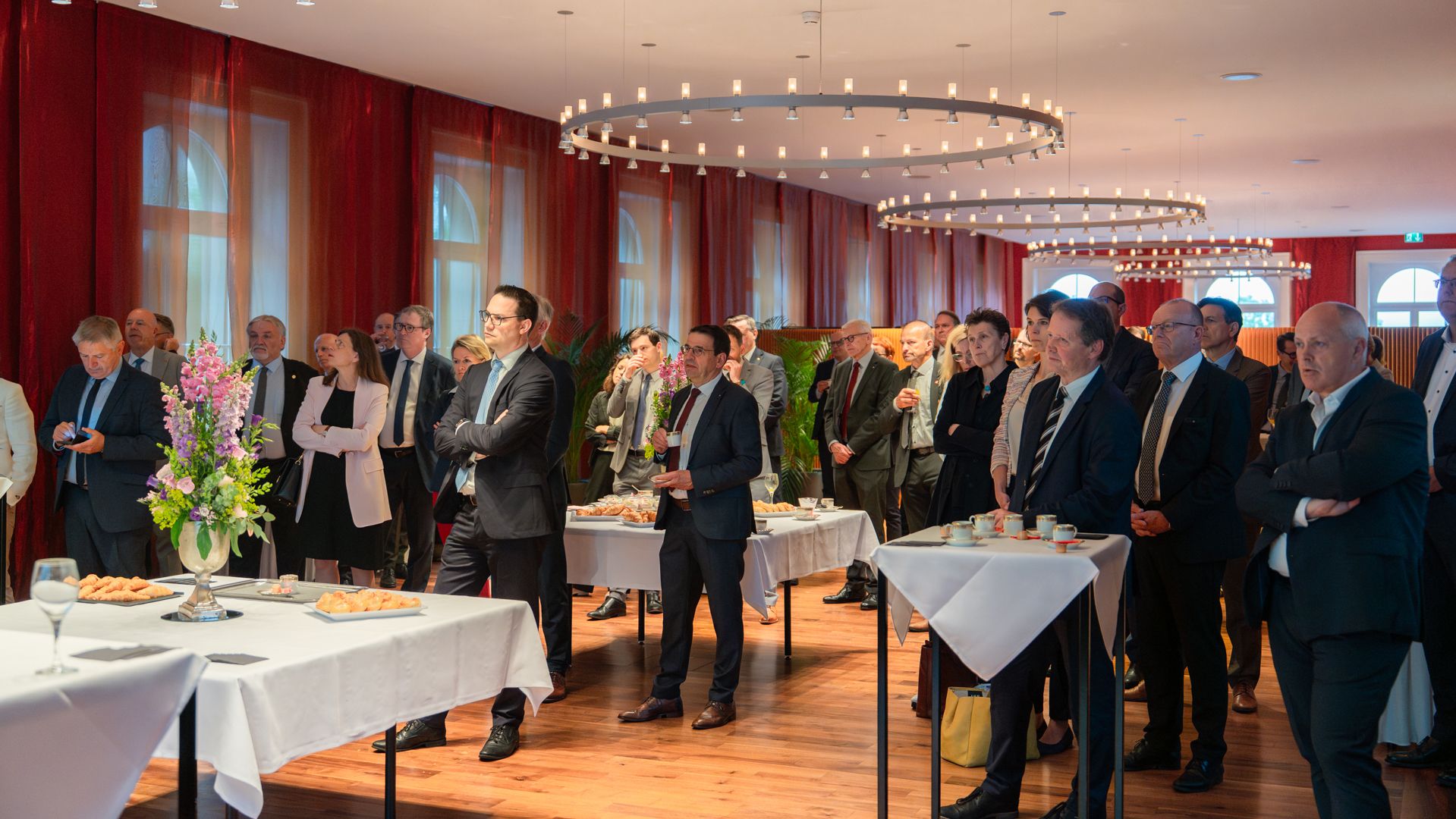 Après les exposés, le conseiller fédéral Martin Pfister et Urs Loher ont répondu aux questions du plénum, puis ont profité de l’occasion pour poursuivre leurs échanges avec les parlementaires lors d’un petit-déjeuner.