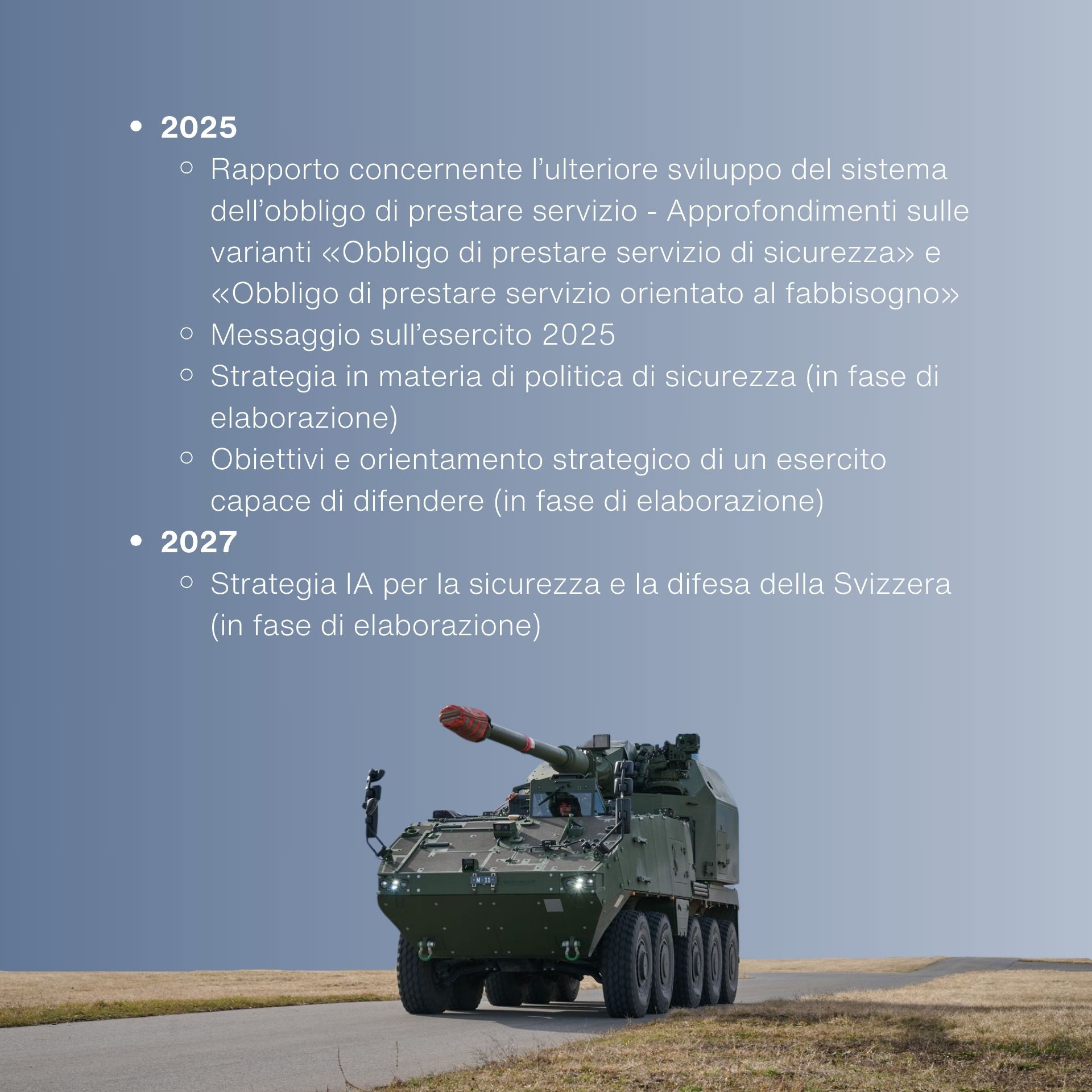 Il messaggio sull’esercito 2025 si inserisce in queste pianificazioni.