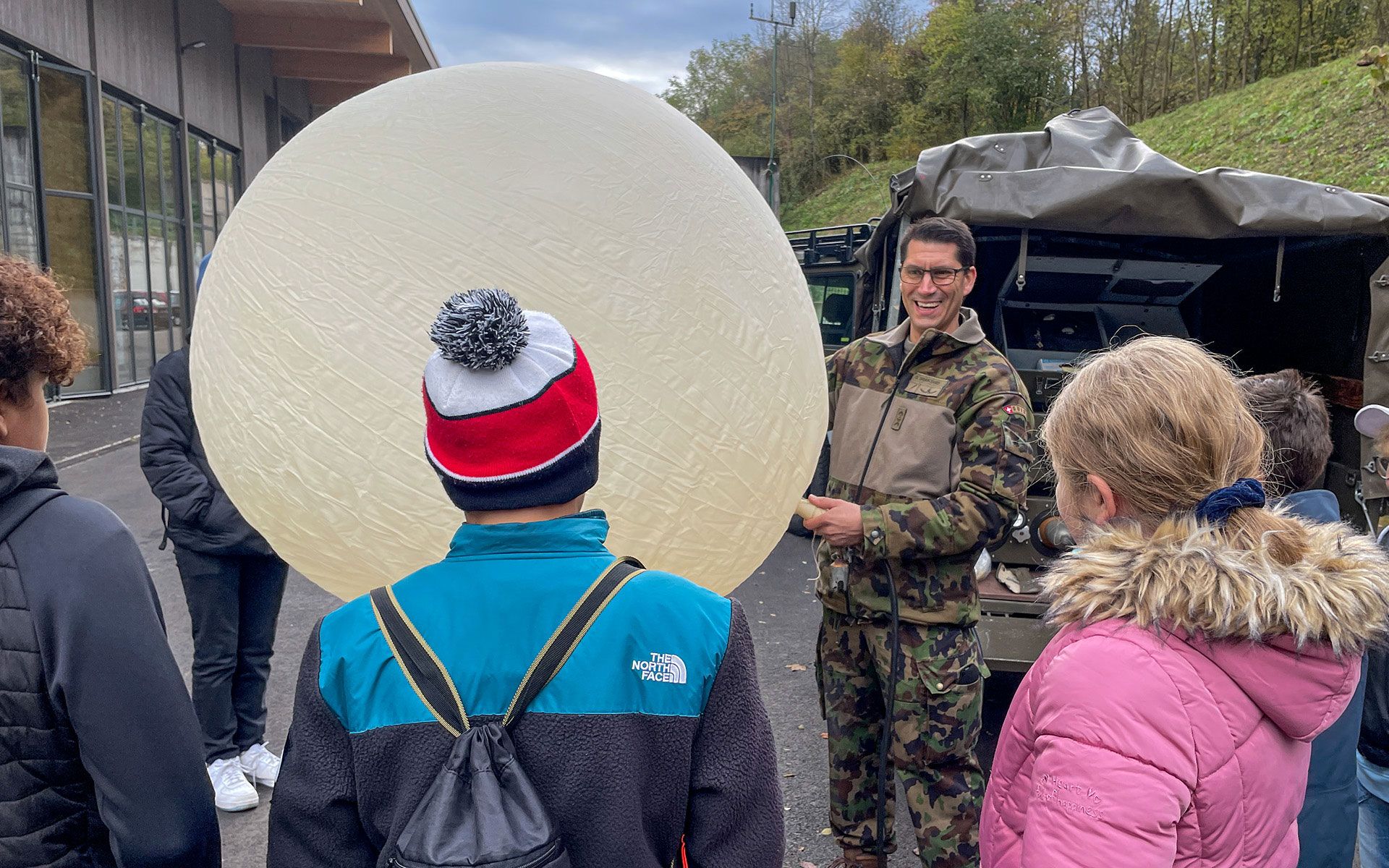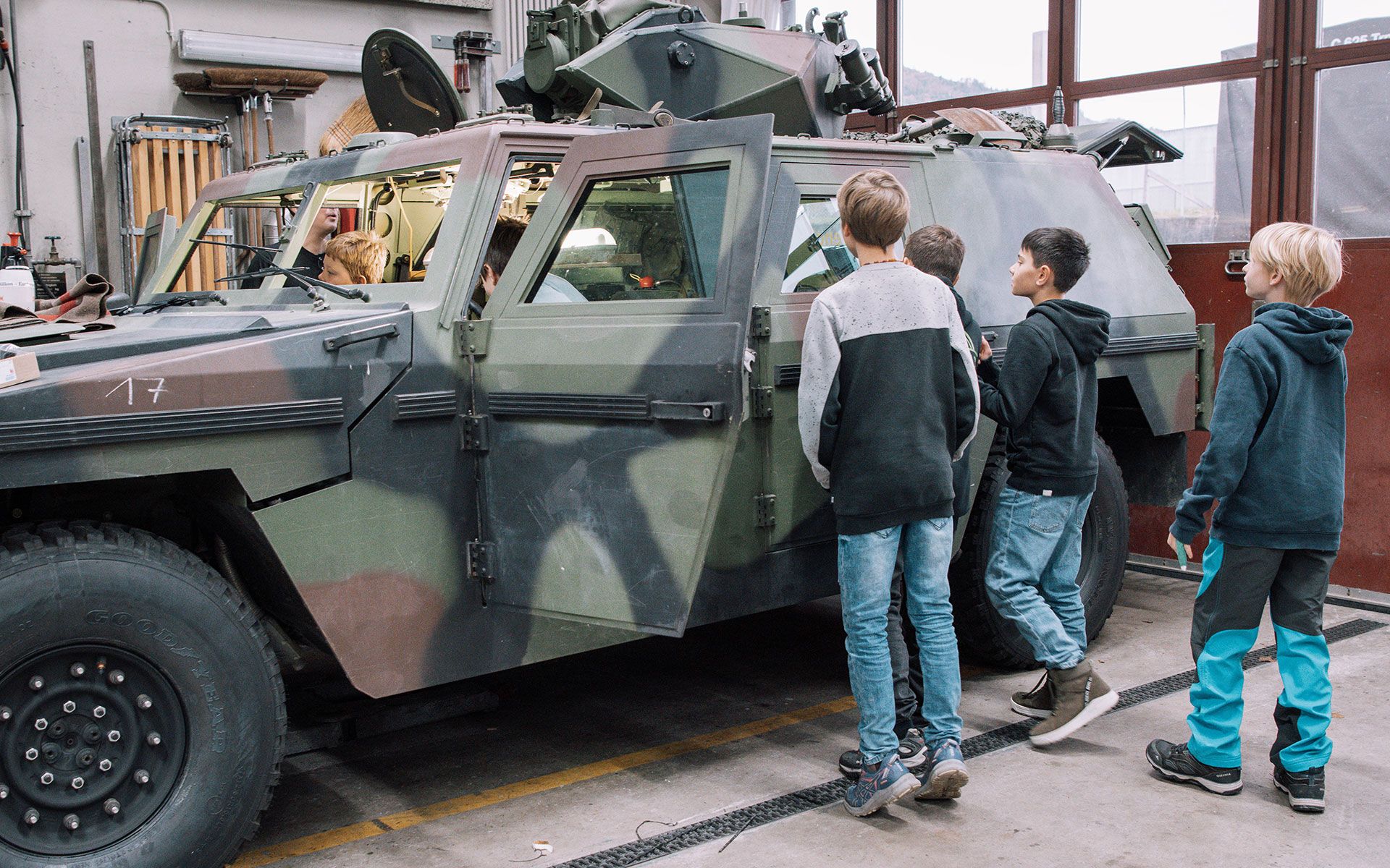 - Da armasuisse i bambini hanno passato la mattina presso le opere contro l’inquinamento fonico di Wittaumatte a Thun. Qui hanno potuto farsi un’idea del mondo dei sistemi di condotta e d’esplorazione e osservare un mortaio 16.