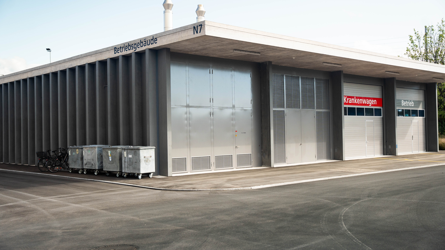 La caserma è affiancata dall’edificio per la guardia, l’amministrazione e la medicina (il cosiddetto edificio «WAM»), che ospita la guardia con portineria e locale adibito alla guardia, l’amministrazione e il centro medico regionale (CMR). Il progetto di costruzione è completato da un edificio operativo con i magazzini logistici, locali per i pompieri, la centrale energetica e l’impianto di alimentazione elettrica di emergenza.