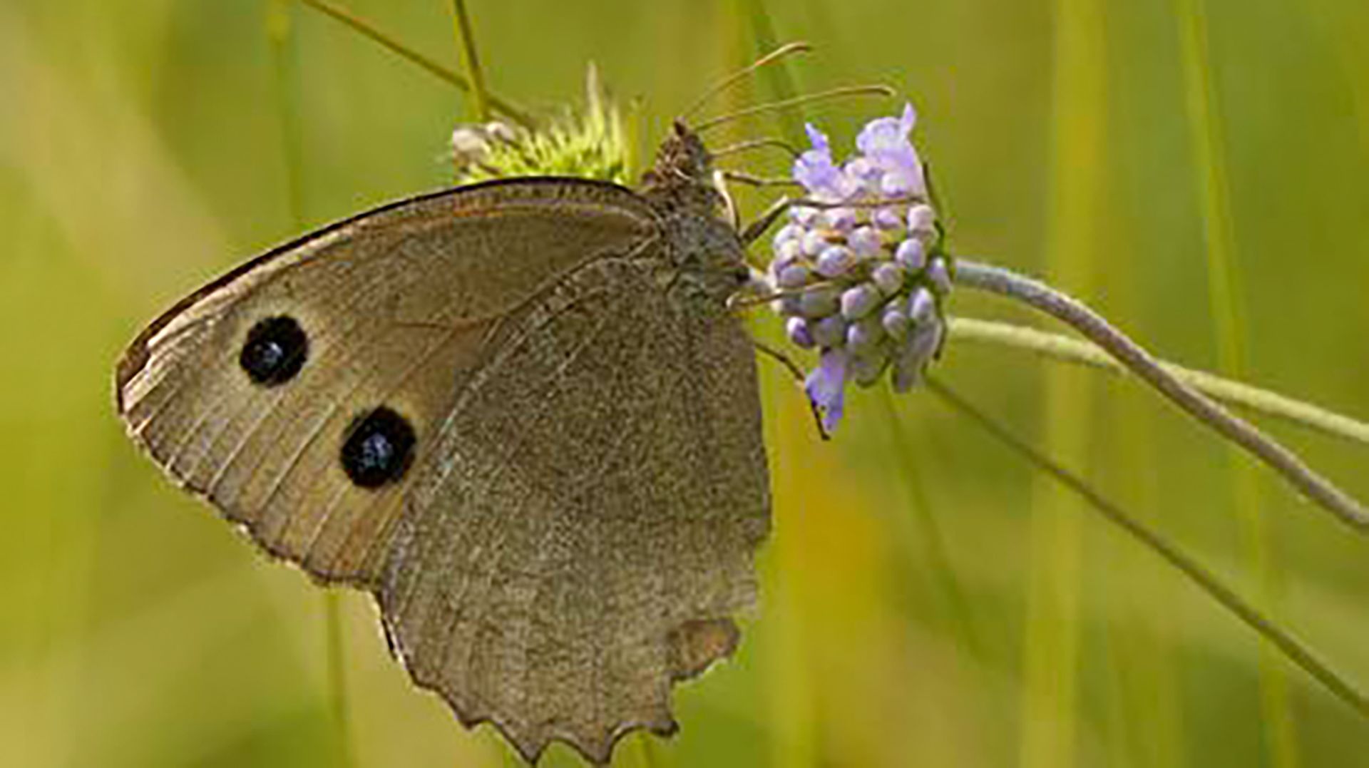 Die Trockenwiesen entlang der Seez und beim See werden höchstens ein- bis zweimal jährlich gemäht. Davon profitieren viele Tagfalter und Heuschrecken wie das Blauauge oder die Schiefkopfschrecke. - Hecken und Gehölze