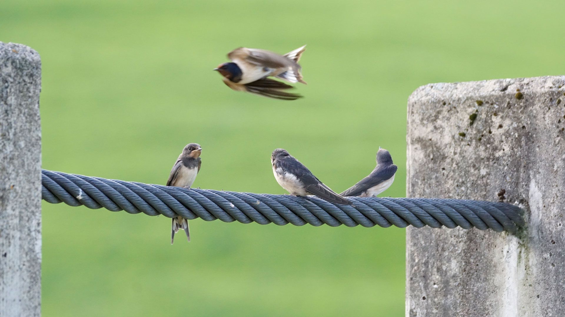 Die aus ihrem Nest auf die Kampfbahn ausgeflogenen Rauchschwalben werden hier von ihren Eltern noch einige Zeit weitergefüttert — © VBS-DDPS, David Külling